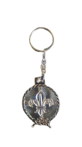 Llavero metalico flor de liz internacional plateada brillante calada