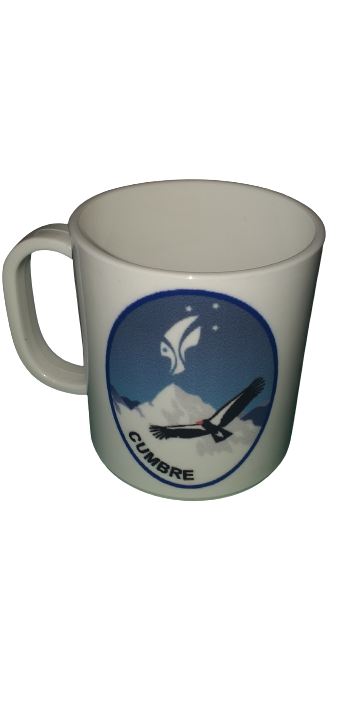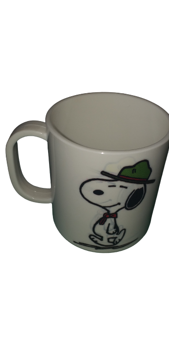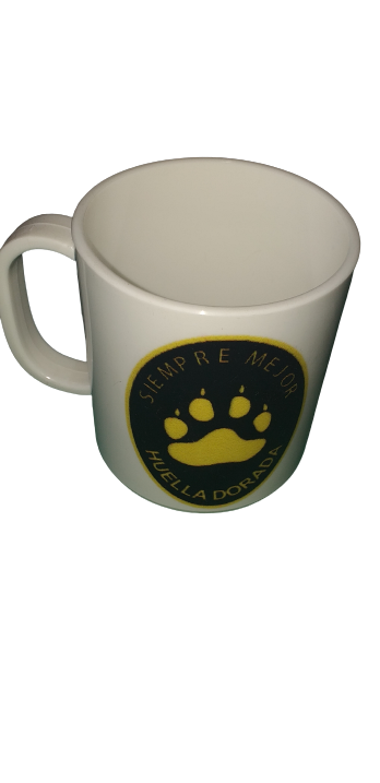 Es una taza de plastico con oreja para su mejor agarre en el caso de tener contenido de altas temperaturas, con un estampado diferentes, una capacidad de 330 cc. Ideal para llevar en la bolsa de rancho.